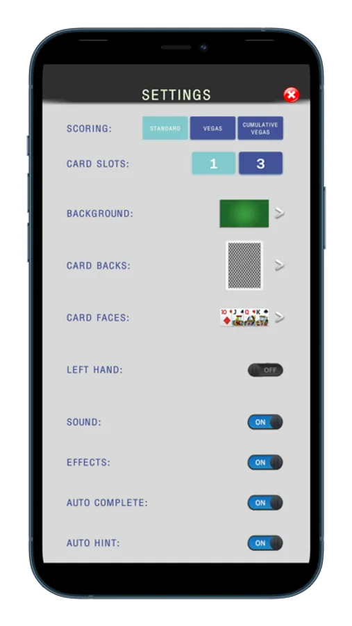 daily challenge • 1 or 3 modes cards • change the background of game • change face of cards