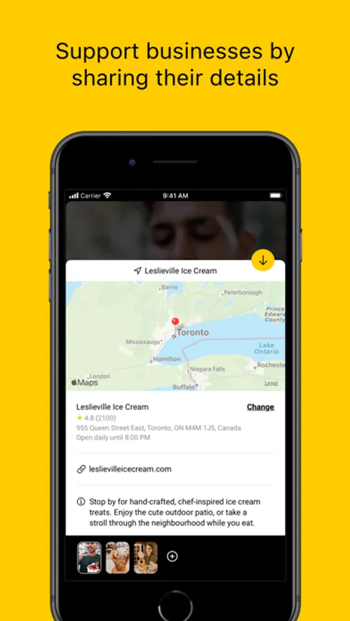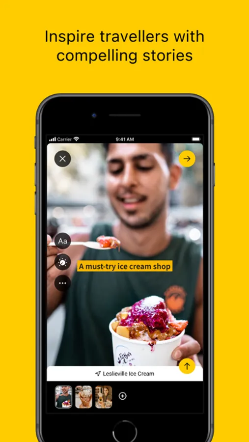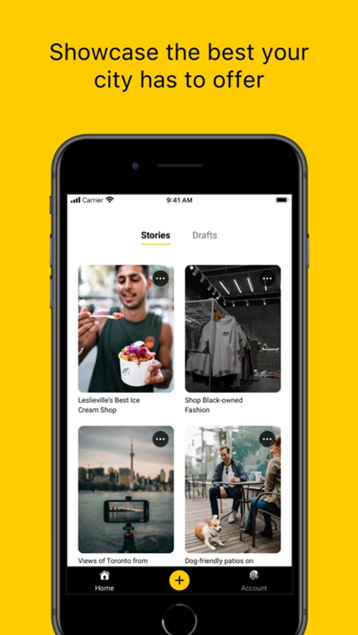 - Create: upload videos and images from your device into the app to easily create Stories that highlight the best your area has to offer.