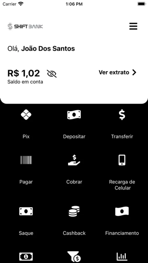 Ao criar a sua conta, você terá acesso a todos os serviços financeiros, tais como extrato, pagar contas, e cobrar alguém.