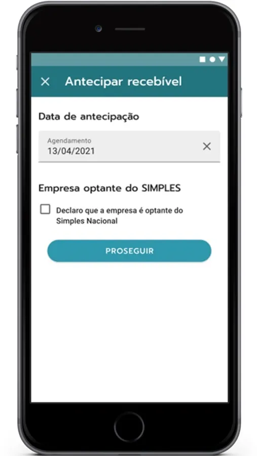 - Faça o cadastro para visualizar as notas fiscais disponíveis para antecipação. Simule e solicite o recurso. Tudo pelo app!