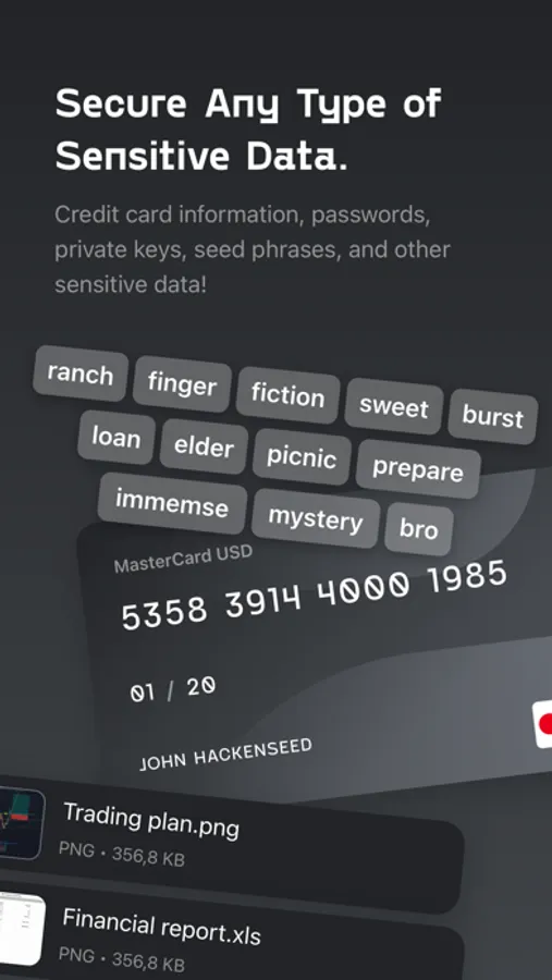 store your Passwords, Seed Phrases, Keys, credit card information, and