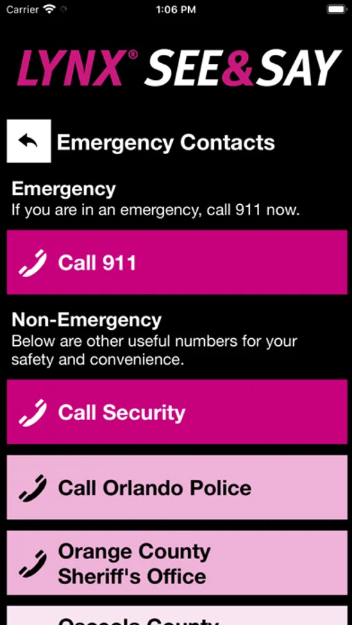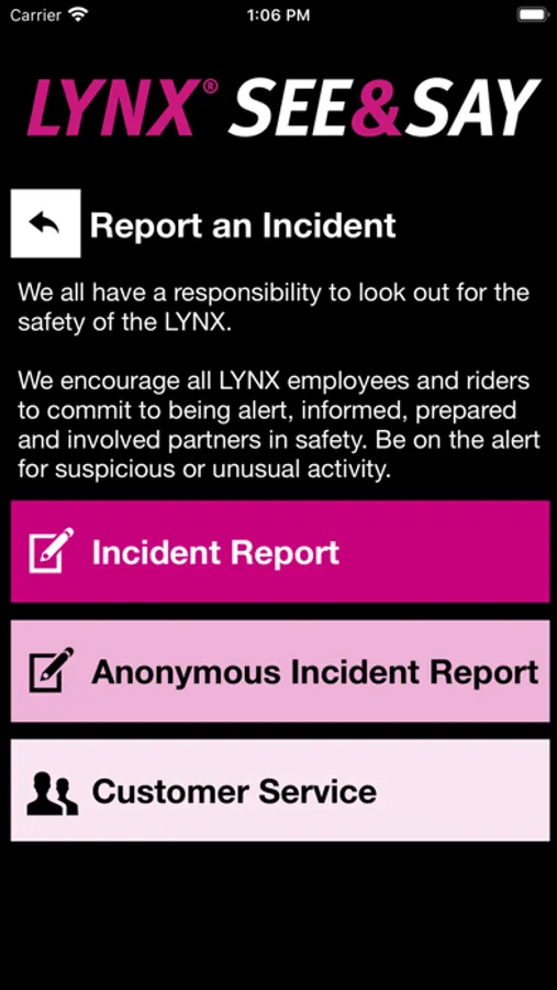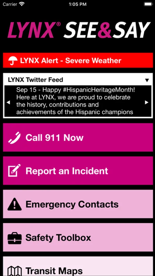 LYNX® See & Say is the official safety and reporting app of LYNX. It is the only app that integrates with LYNX's safety and security systems. LYNX has worked to develop a unique app that provides all its users with added safety and security on the LYNX transit. The app will send you important safety alerts and provide instant access to safety and security resources.