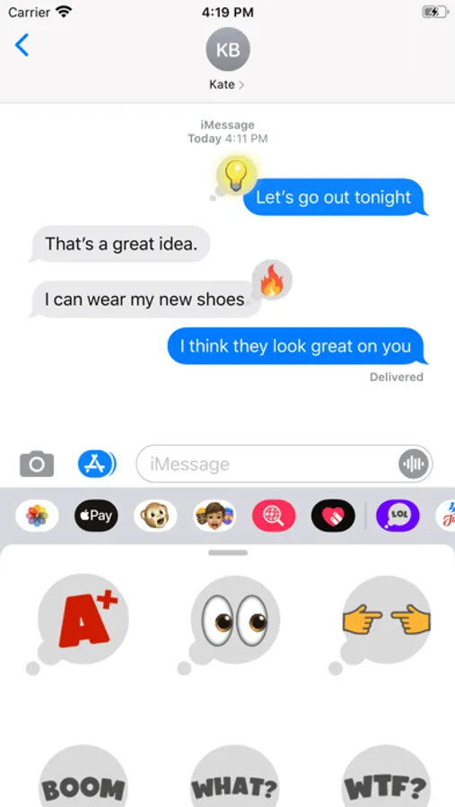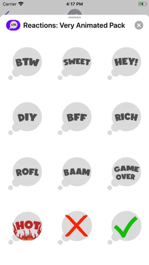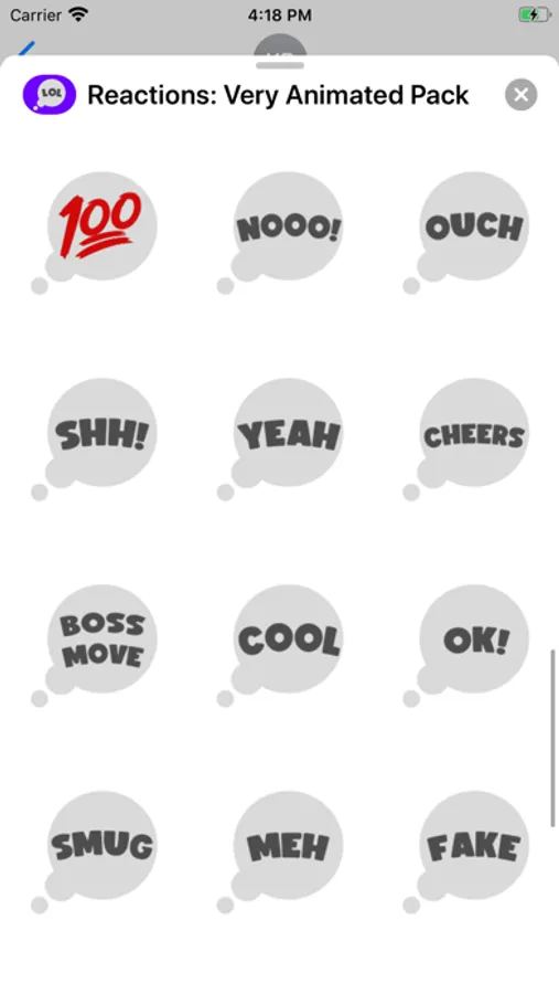There is a wide variety of Reactions Stickers you can choose from this app. Peel and stick them over other conversation bubbles, images, photos, even on other stickers.