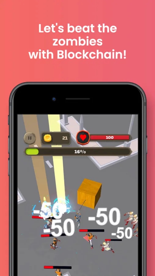 Use your blockchain (a weapon with blocks attached to the end of a chain) to take down the zombies!