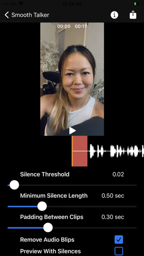 Not everyone is born with eloquence but even the best of us have moments where we pause to gather our thoughts. This app will help you tremendously to trim videos for our silent moments and make it sound natural. You may have to play with the settings of minimum silence length, padding time and blips.