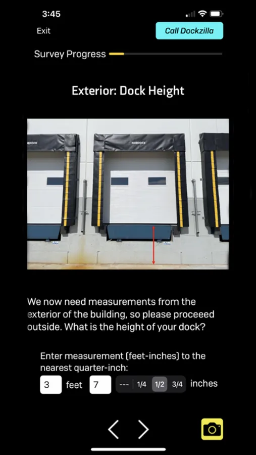 The Dockzilla survey application tells you what to measure at your loading dock(s) and seamlessly shares that information with Dockzilla’s engineers. It also allows you to take pictures of your environment and shares those with the engineers as well. When you enter a measurement or take a picture, the app automatically saves the data. So if you get interrupted and have to pick it back up later, you can!