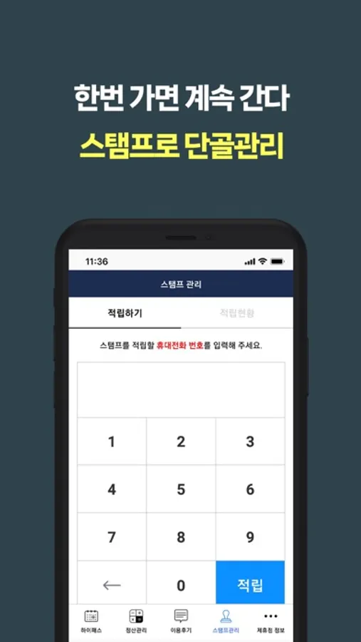 - 스탬프관리 : 사용자 들에게 서비스 이용시 스탬프를 발행할 수 있습니다.