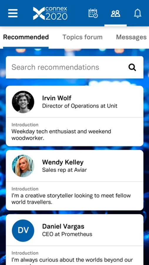 Download the Connex Events mobile app to view events including the schedule, exhibitors, interactive exhibition maps, sessions, speakers, Connex|TV, and more! Connex is going green by putting all event information in one convenient app. Features include SMARTNetworking, SMARTLeads (for exhibitors purchasing our lead retrieval platform), personalizing your schedule and more. Get social with #connexFM!