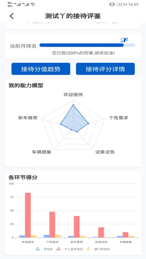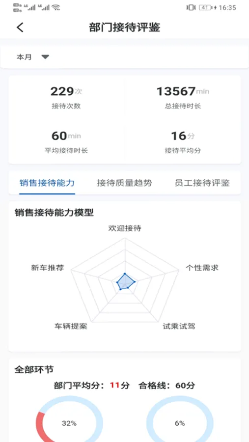 4)查看个人的接待数据,包括接待次数、时长、考核得分等;