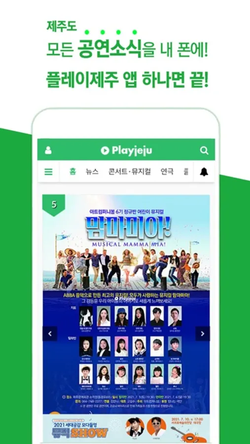 제주도 공연정보 공유 플랫폼 플레이제주 공식 앱. 제주도내 콘서트, 뮤지컬, 연극, 클래식, 오페라, 무용, 국악, 전시회 및 각종 행사, 축제 정보를 제공합니다. 이밖에도 제주도내 15개 언론사의 문화예술계 뉴스, 공연문화시설, 아티스트 정보 등을 제공합니다. 공연등록 신청은 무료로 제공되며 티켓 예매서비스도 곧 선보일 예정입니다.