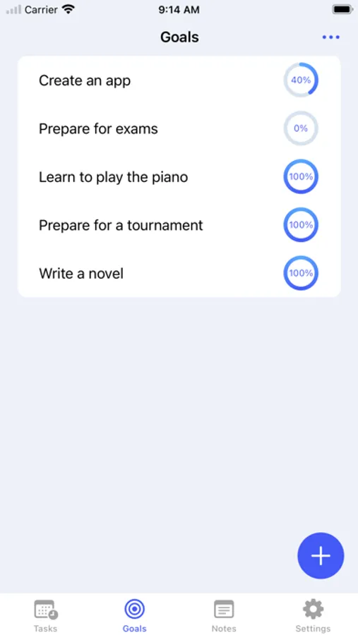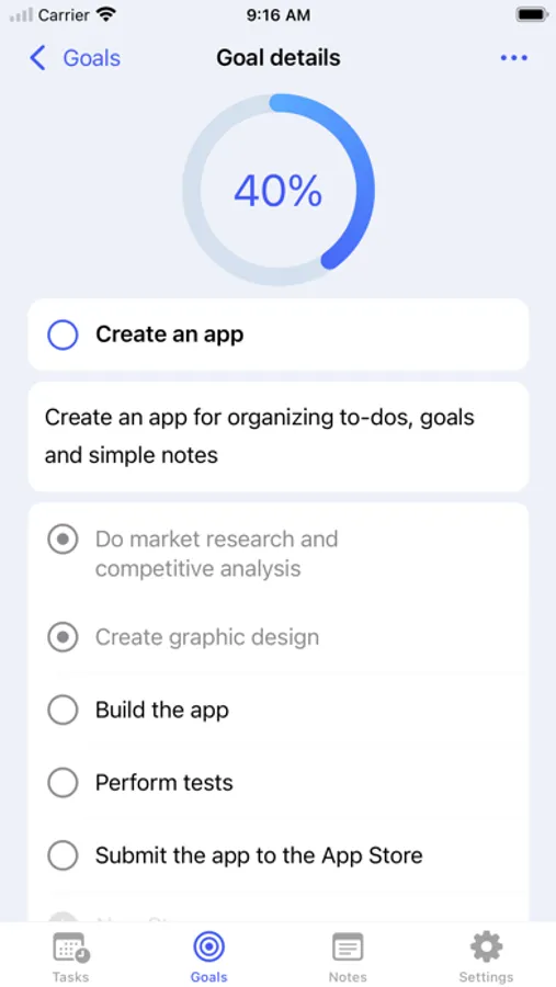 The Goal tracker will help you to achieve the results you want. Create goals and track their progress. Divide goals into steps and schedule them along with regular tasks in the to-do list.