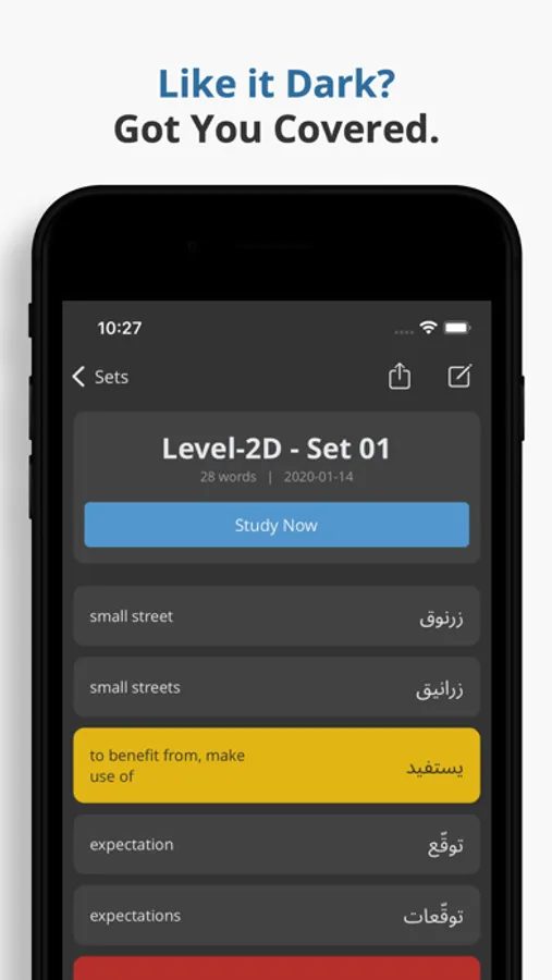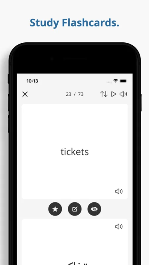 ◆ Start flashcard study sessions from a set, a folder, or even just your starred words that you need to tackle further.