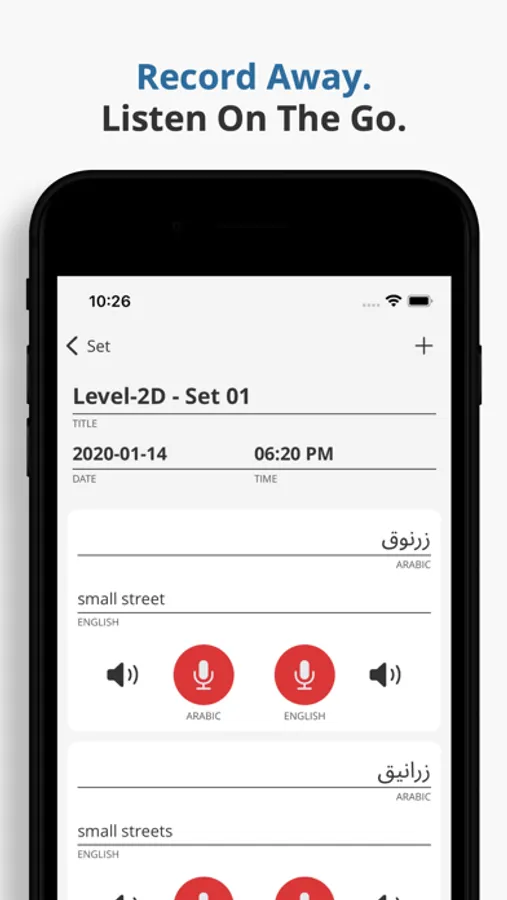 ◆ Record and playback audio (both English and Arabic) for each word so that can remember those nuanced pronunciations.