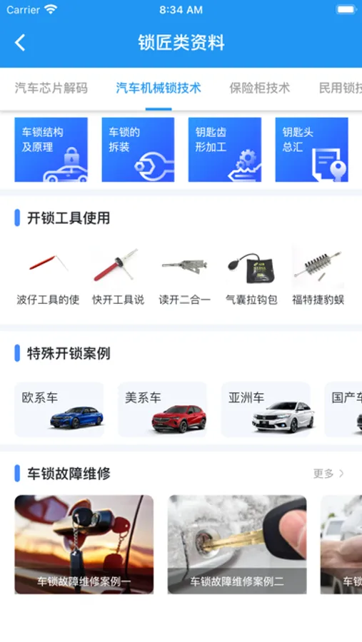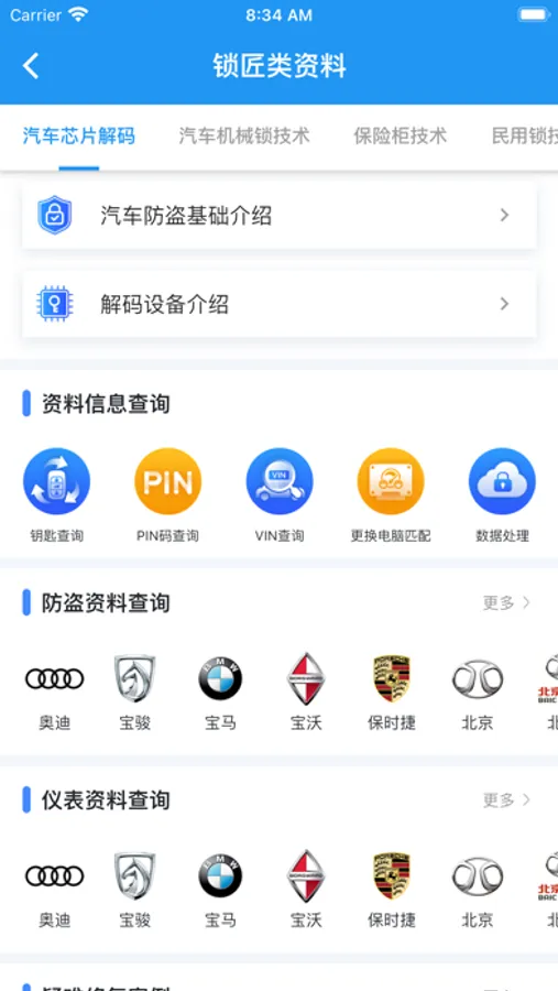 车艺通APP 是由云峰科技重金打造的关于锁匠及汽修专业技术资料查询平台,其中包含锁具维修技术、汽车芯片解码技术、汽车故障维修技术、汽车故障码、汽车后装产品安装技术等众多技术于一体的综合性技术资料查询平台。