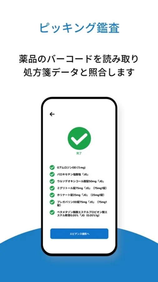 カメラでバーコードをスキャンし、調剤薬品を鑑査。