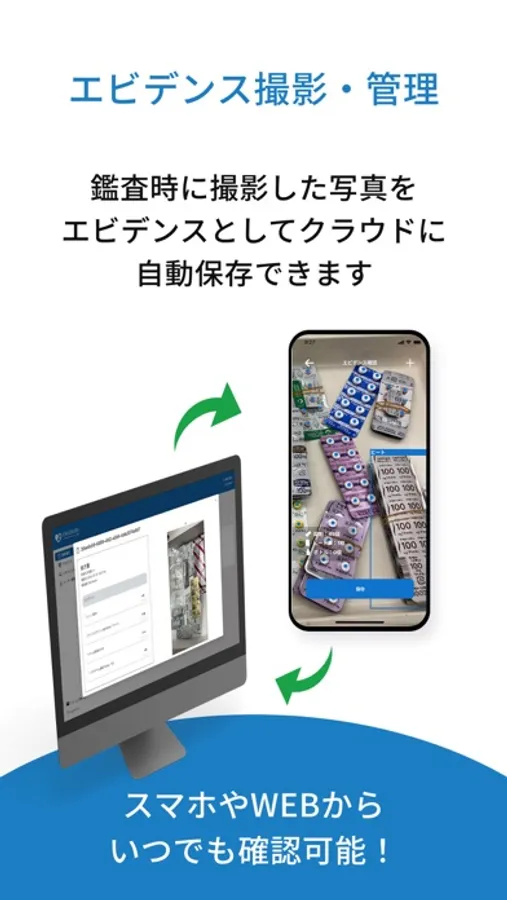 薬品の写真を撮影し、その画像を安全にクラウドにアップロード。