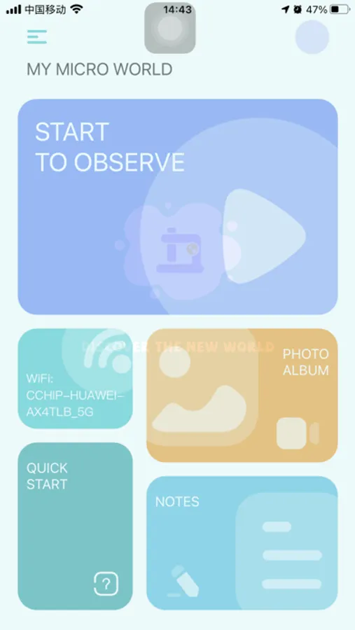The MicView children's smart microscope APP, by connecting with the device, you can see the real-time image screen on the smart phone. At the same time, it provides functions such as image recording, storage management, and note recording.