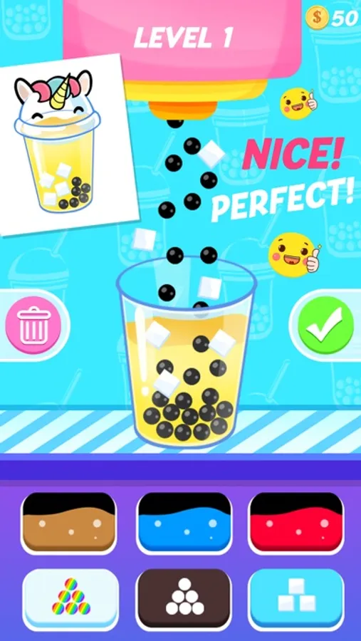 Earn coins and get all the cup lids and rainbow pearls to customize your bubble teas.