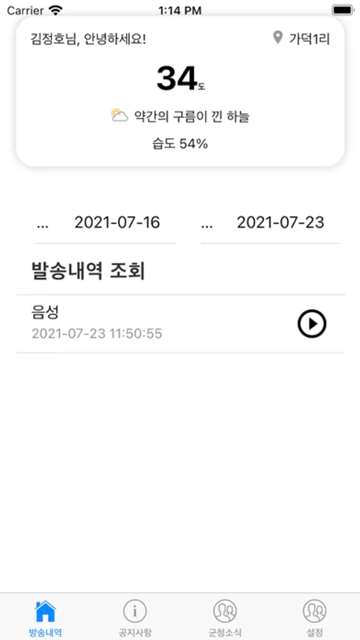 부여군 주민들이 군청 및 읍면동 관리자, 이장이 발송한 통합메시지(문자, 음성, 방송 등)를 재청취 하기 위한 어플입니다.
