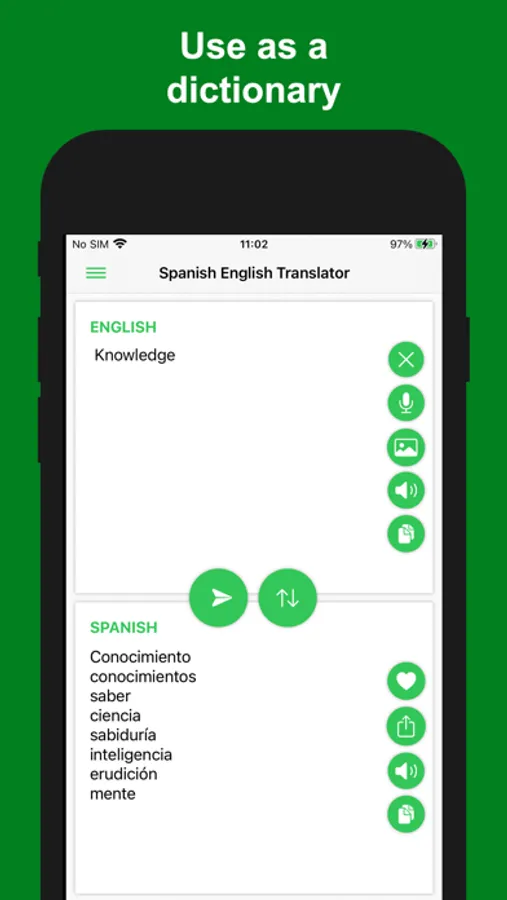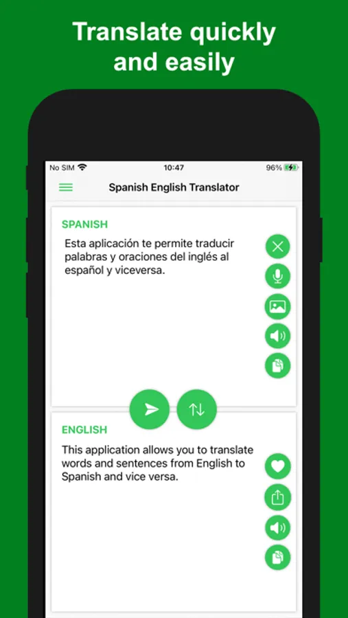 Spanish - English Translator+ is an application that help you lookup dictionary and translate words and sentences from Spanish to English, or translate English to Spanish too. This translator is free and you are able to translate words or sentences quickly, conveniently and easily.