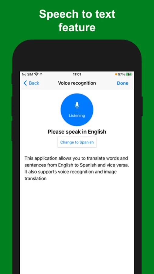 - Speech to text feature (voice recognition): support Spanish and English voice input