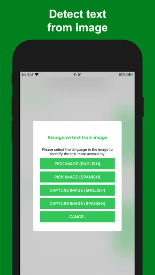 - Detect text from image (image translation): you can select an image then the application will help you to detect text and translate them