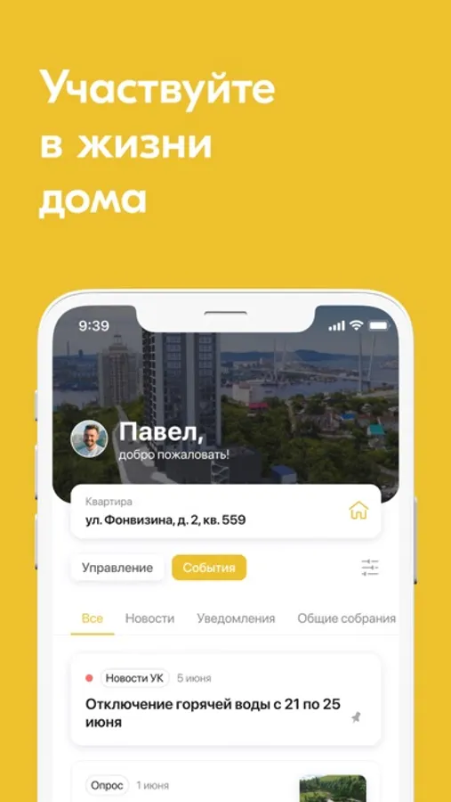 Приложение позволяет легко взаимодействовать с управляющей компанией и принимать участие в жизни дома с мобильного устройства.