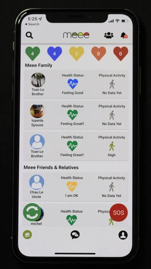 Meee connects family members and those we care about so that each one of us will know how the others are feeling. The ability to have a general idea of how our loved ones are feeling/doing by glancing at the phone gives us instant peace of mind or springs us into action to get in touch with those who are not feeling/doingwell. Meee integrates with the Health App to retrieve and display your daily steps count data and share it with your friends and family as an indicator of your overall physical activity and wellbeing.