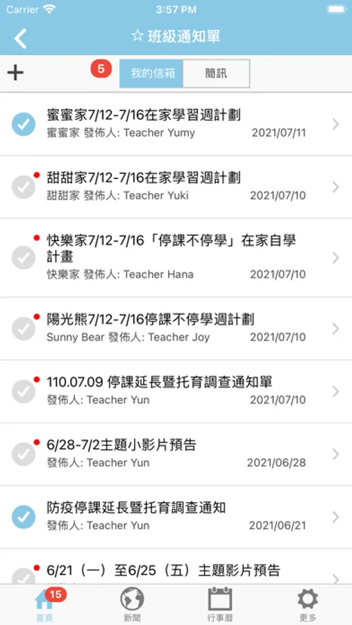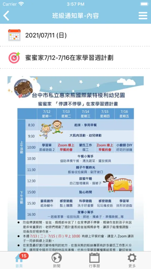 2. 班級通知單:接收班級教師或學校發送的訊息。