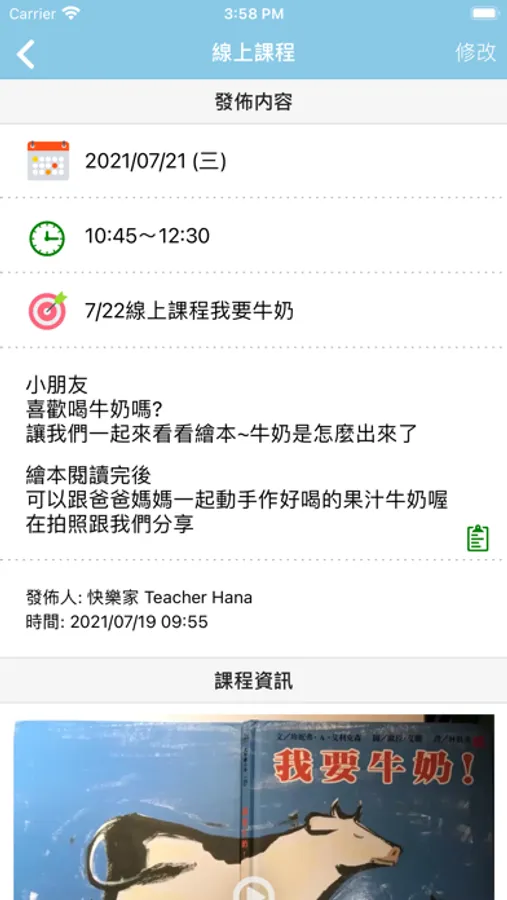 4. 相簿:家長與老師傳送照片的匯整,可分類並批次下載至手機。
