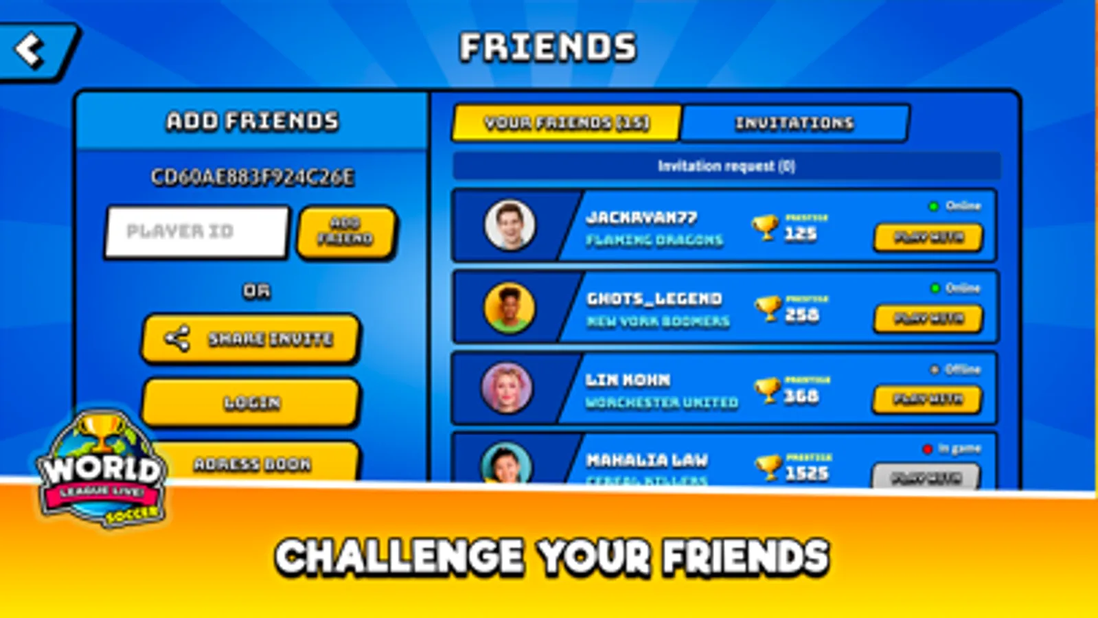 Join World League Live, the fastest-paced and craziest social multiplayer football game where you can challenge your friends and thousands of real opponents around the world.