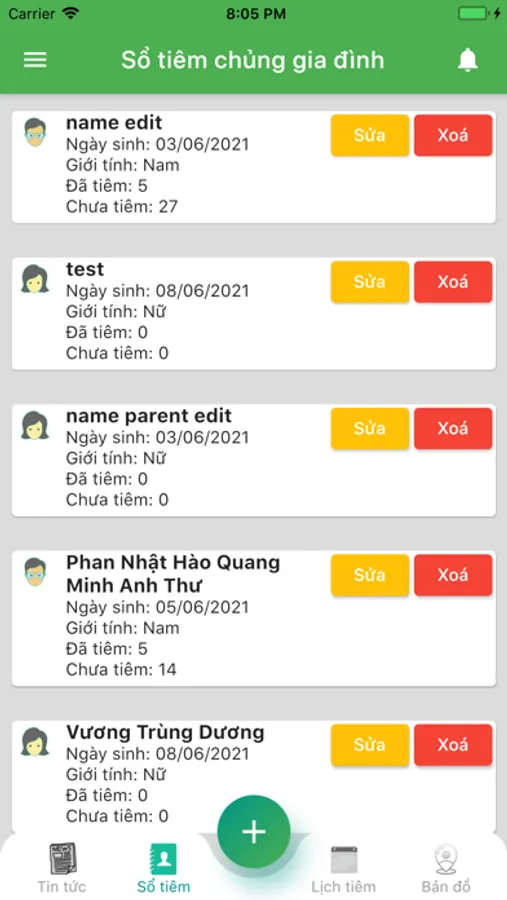 - Thêm xoá vắc-xin trên từng sổ tiêm.