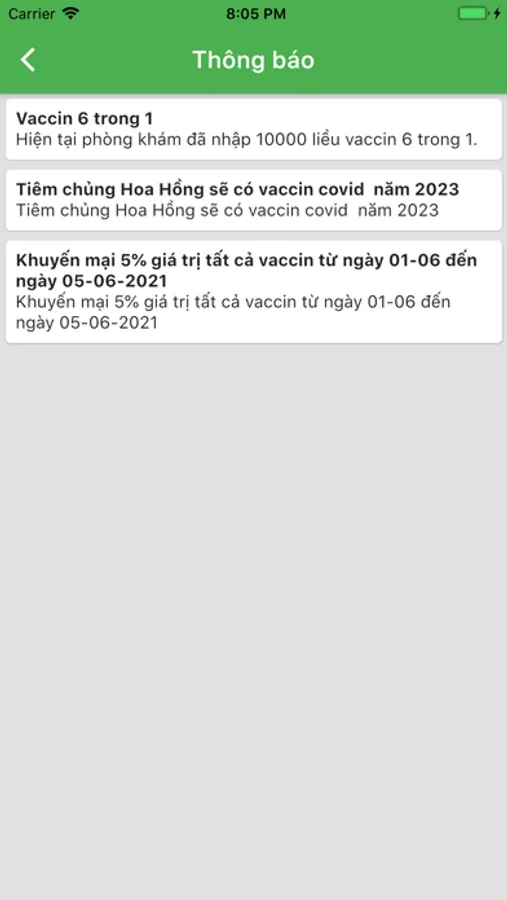 - Gửi thông báo về các chương trình khuyến mại, nhắc lịch tiêm, mũi tiêm cho từng bé