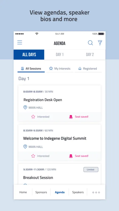 Receive real-time updates about sessions, speakers, and other event-related information, filter by track, interest areas, and build your schedule.