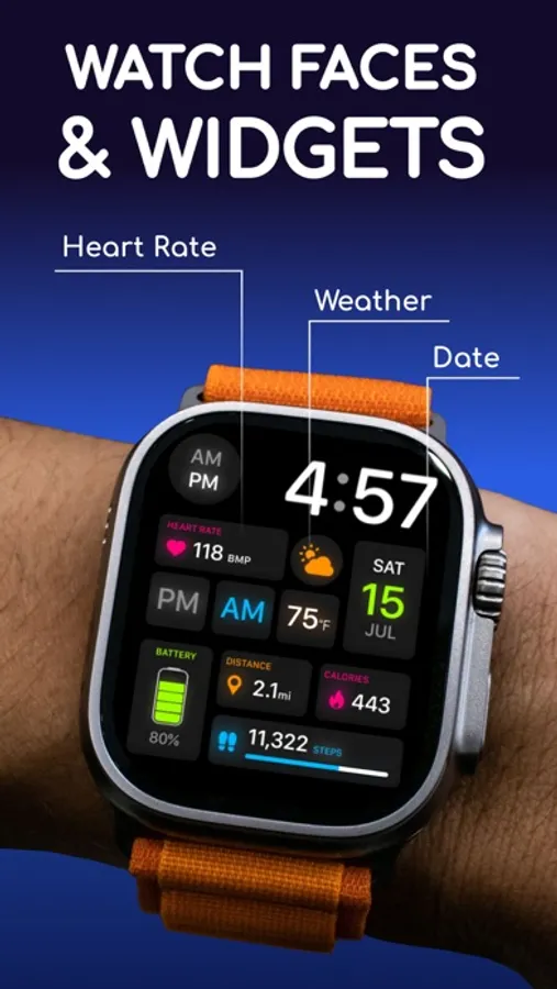 Your Health data might be used in this app. We offer Watch Faces with Steps, Distance and other data.