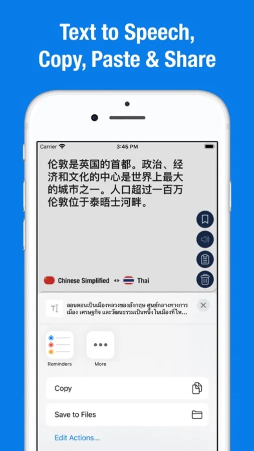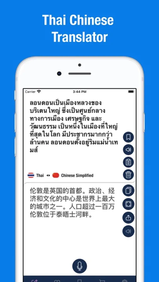 It is a translation tool that helps you break down language barriers. Excellent app for all who make the first steps in learning Thai or Chinese languages. Intuitive interface, easy navigation, quick result. Begin conversations confidently!