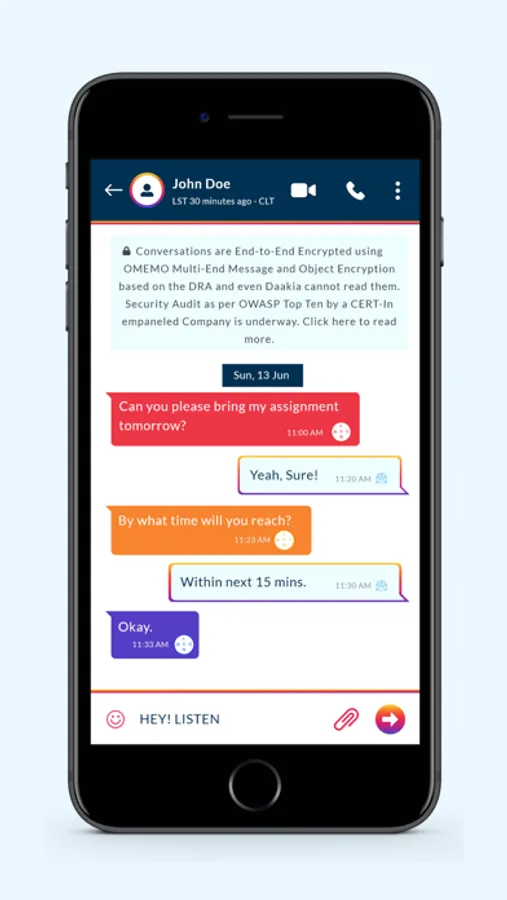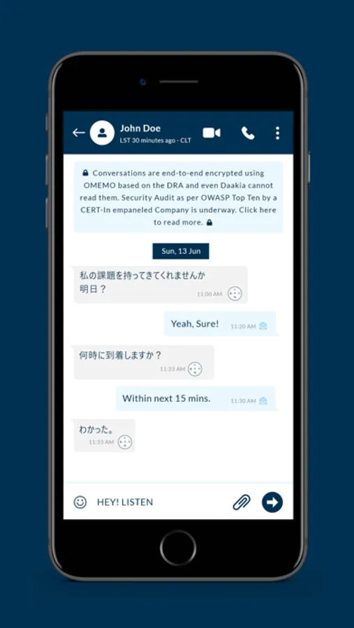 A cross-platform mobile app to make collaboration and communication easy and effective: be it at the office, home or on the go. Bring your work, classroom or webinar together on Daakia and enjoy a more streamlined and secured experience that makes seamless cross-language communication possible.An app for Chat, Call, Conference, Translation, Tagged Forward, Edit Message, etc. Patent pending for tagged forward & multilingual inline chat.