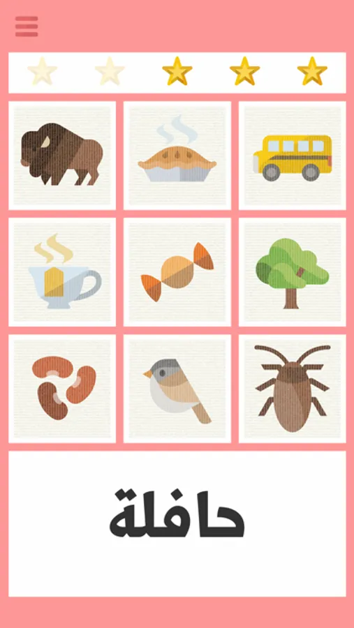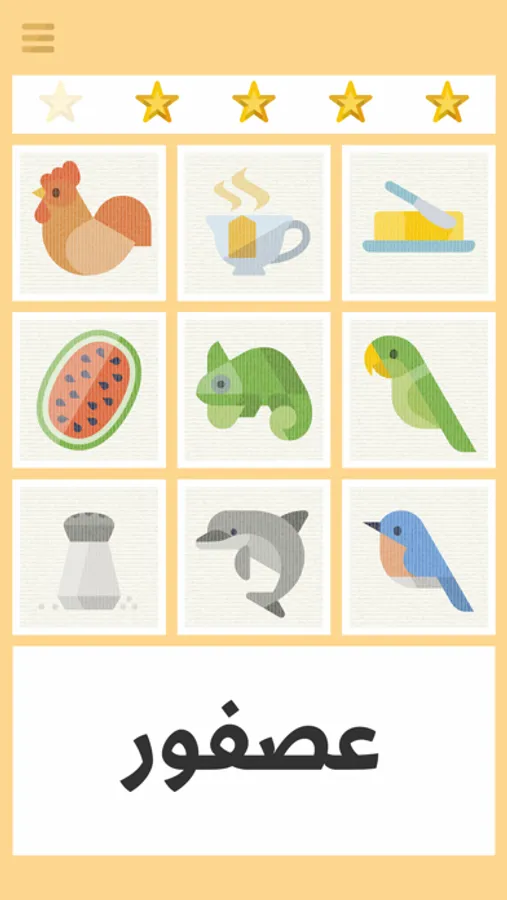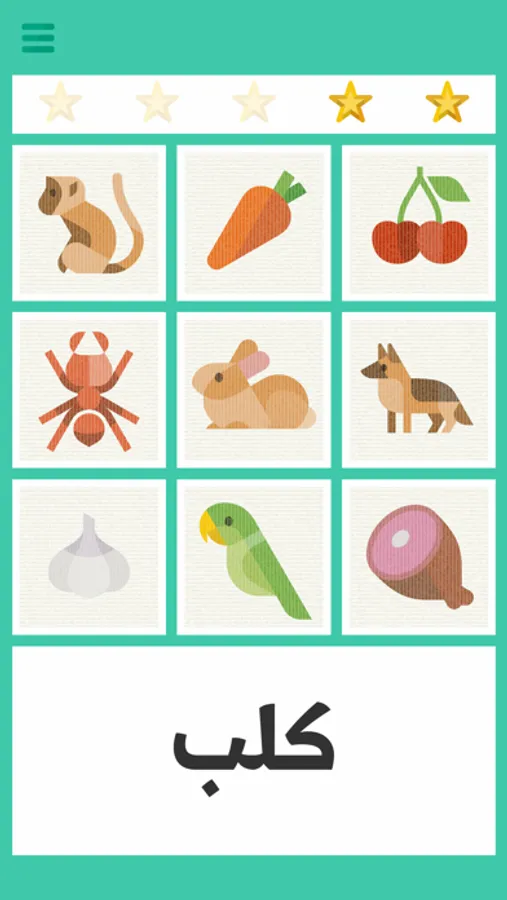 لعبة بسيطة للأطفال لتعليمهم قراءة الكلمات باللغة العربية عن طريق الربط بين الكلمة والصورة الدالة عليها. صعوبة الكلمات من ناحية القراءة والمعنى تتزايد تدريجيا في عشرة مراحل تصاعدية.