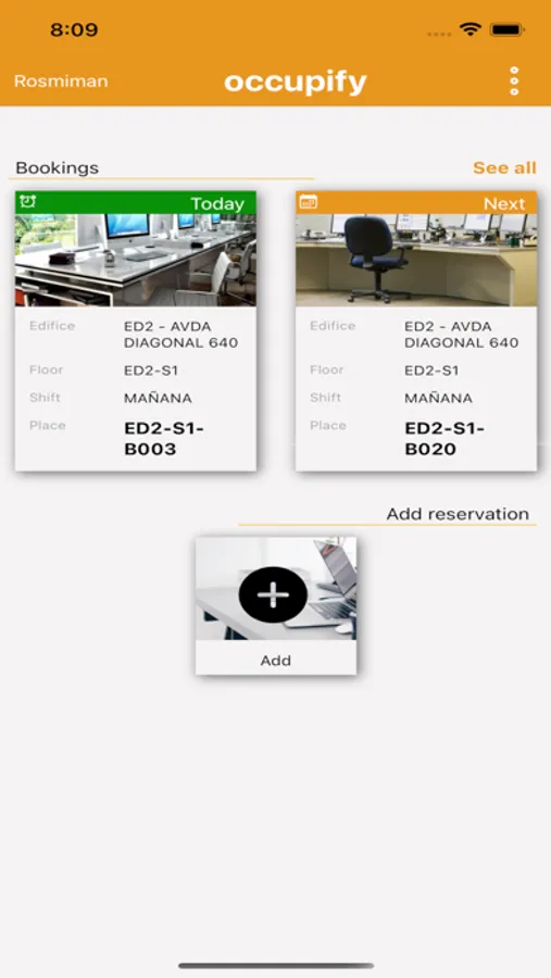 Aplicación para la reserva de puestos en entornos Rosmiman.