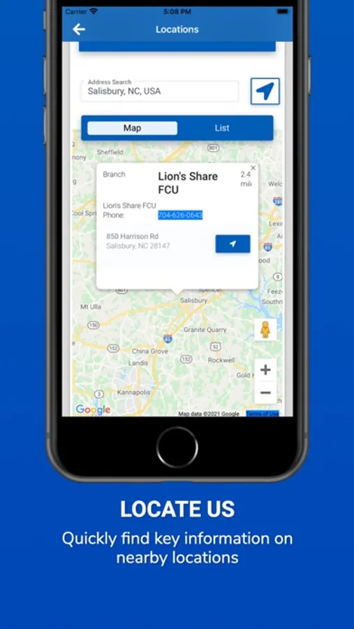 • Locate & receive directions to the nearest Shared Branch & surcharge-free ATMs.