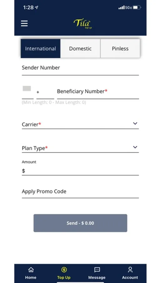 Download the Tila Top Up app to send secure and reliable mobile top ups. With access to over 200 carriers, you can top up any domestic or international phone instantly.