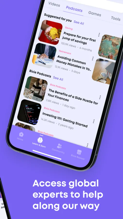 Access peer-to-peer support and expert advisors through our community platform. Connect with your friends and other Bixie users to hold each other accountable and achieve your financial goals together.