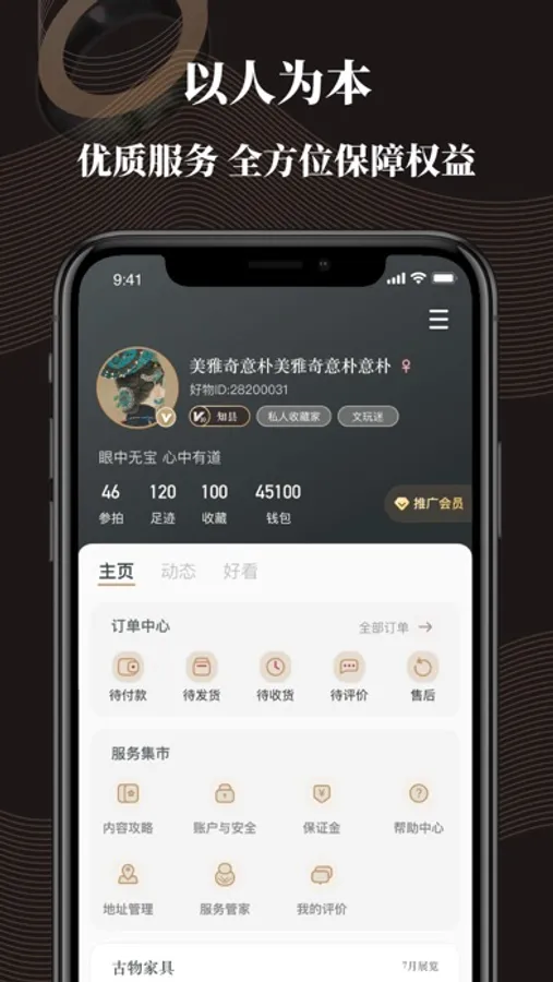 好物传世严格规范商家,从商家资质、商品审核、物流跟踪和商品售后等方面,全方位保障文玩消费者的权益。