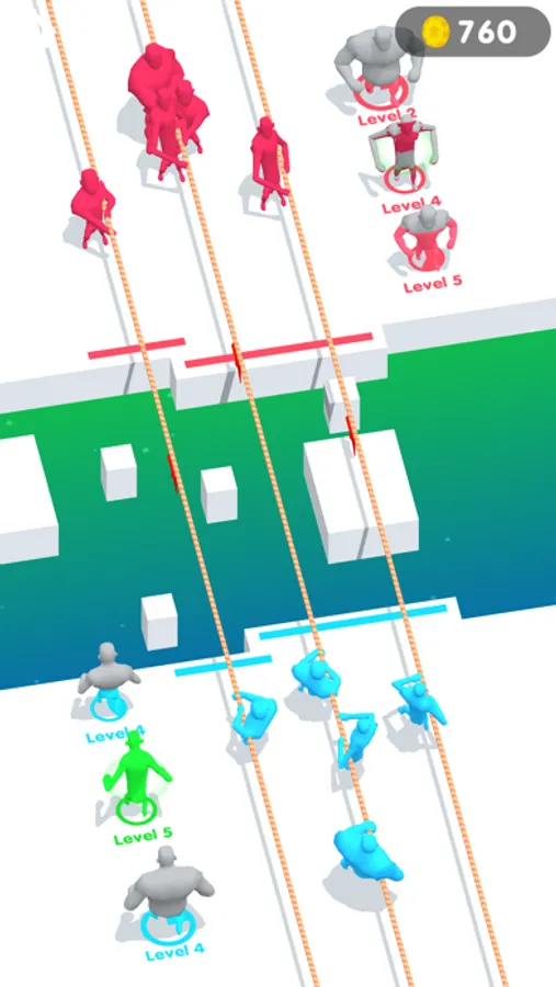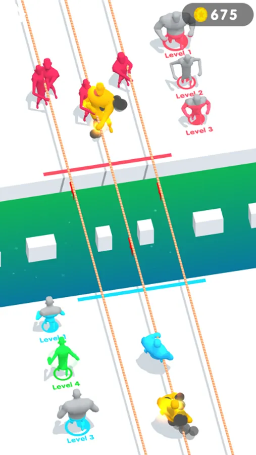 In this game you will need your team to fight with the opposing team in a tug of war. There may be more than one rope in the confrontation. As you progress, you will have to level up each of your team members. During the tug of war you can move one or the other team member to different positions. Play wisely and then victory will be yours.