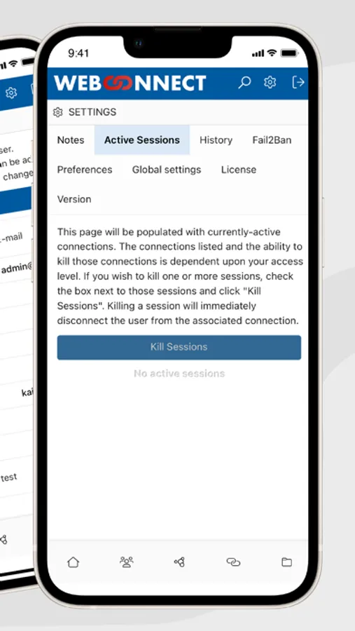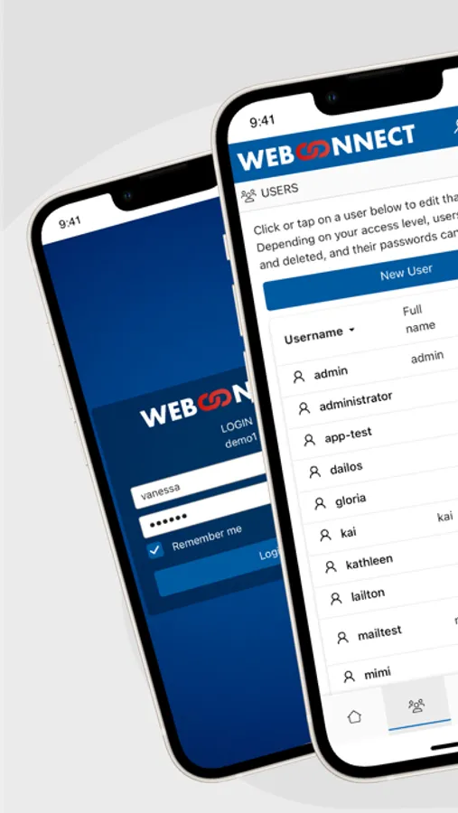 WebConnect's mobile apps are the ideal supplement for working with a tablet or mobile phone. They are optimized for small screens. Automatic screen resize functions allow you to work in any orientation of the device