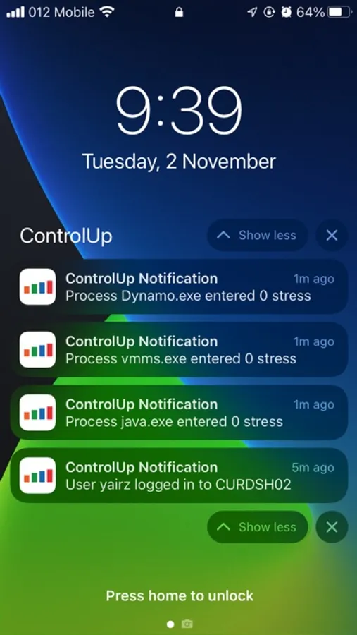 Even when you’re not accessing ControlUp or your email, you can get push notifications for any of these incidents configured in the ControlUp Real-Time Console: