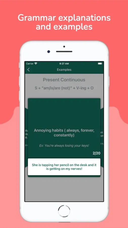 One of the things every second language leaner needs in some moment is grammar explanations and examples. 12 English tenses practice helps you to learn 12 tenses of English languages in a very easy, proper and effective way. This app can help you to understand and use structure and contexts properly. You can improve and increase your knowledge of 12 English Tenses.
