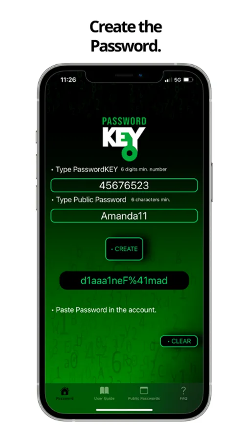 To create it, type a word and a number and run the App. Then paste it into the account.