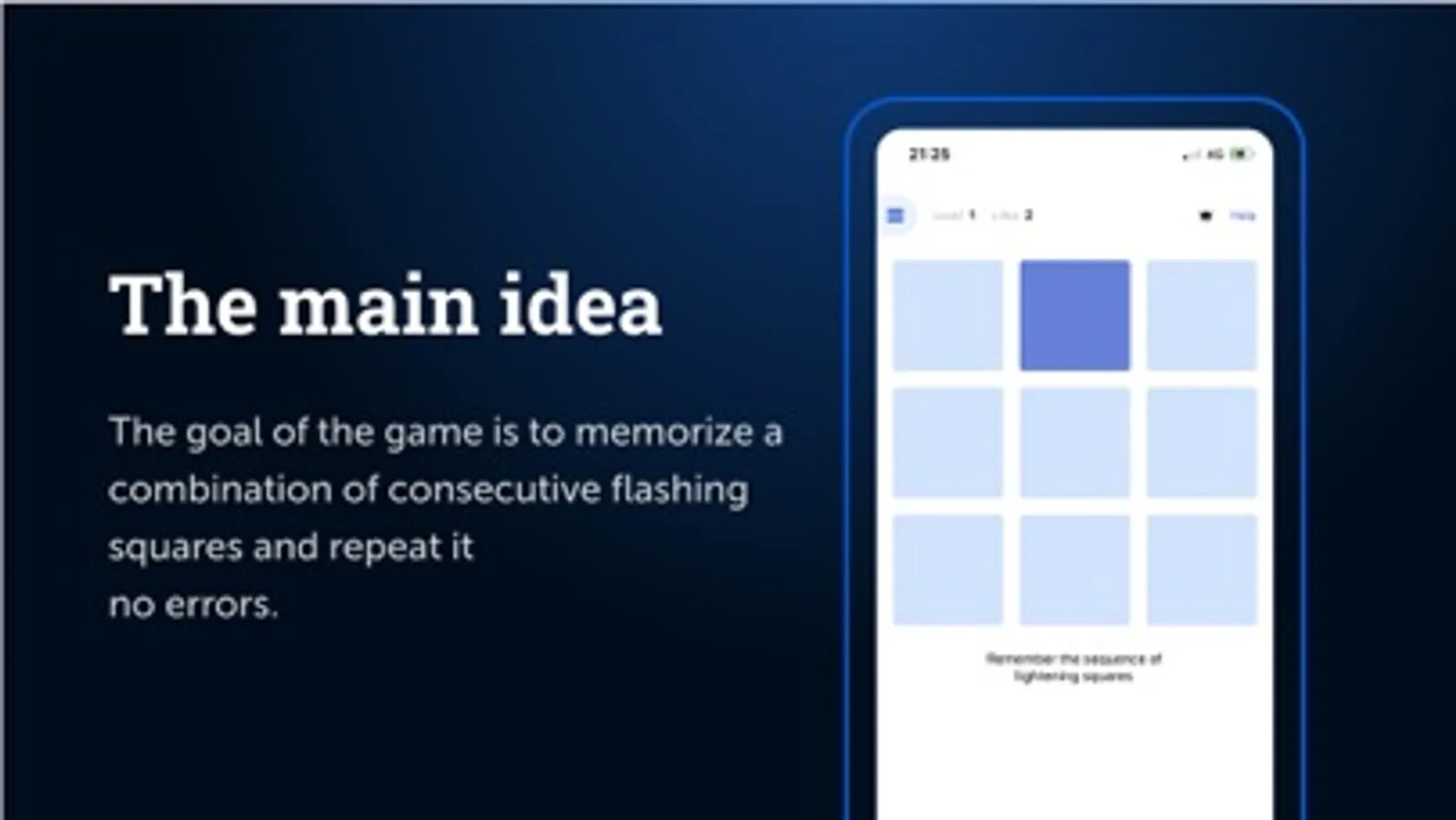 The main idea of the game is to remember the sequence of flashing squares and then play it back. Sounds simple, but it really isn't!