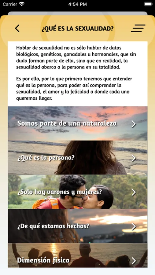 Con esta app podrás aprender, experimentar, descubrir, aclarar, consultar, navegar, educar, contactar, formarte y mucho más, en todos los temas de sexualidad, con expertos e instituciones que respaldan el estudio serio y científico. Ven y hablemos de sexualidad.